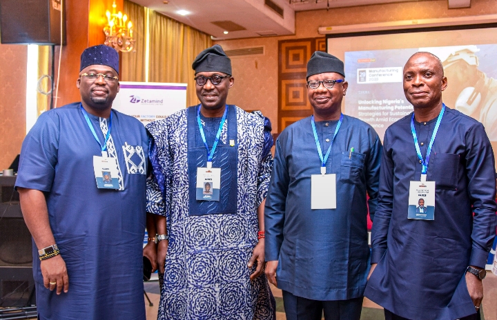 Photo from left: MD Coleman Wires and Cables industries limited, Mr. George Onafowokan; DG MAN, Mr. Segun Ajayi-Kadir; and Mr. Adetunji Aderinto, Founder Zetamind Consulting Limited, during at BusinessDay Manufacturing Conference in Lagos, on Thursday.